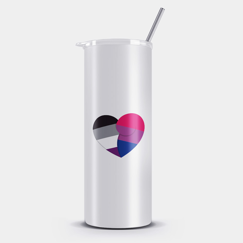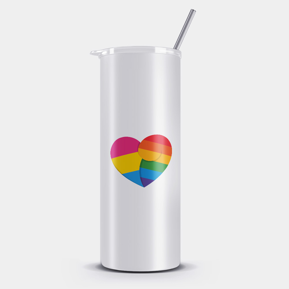 Our customizable Koru Heart LGBTQIA+ Stainless Steel Pride Tumbler, a 600ml (20 oz) travel companion with a metal straw that’s always ready for your adventures. It boasts double-walled insulation technology to keep your drinks at the perfect temperature for longer.