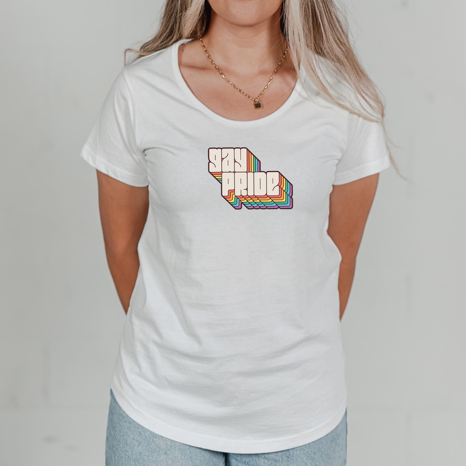 Experience lasting comfort with the Gay Pride tee. Made from premium combed cotton, its scoop neck, longer sleeves, and thoughtfully designed fit allow for effortless movement and a touch of feminine style.