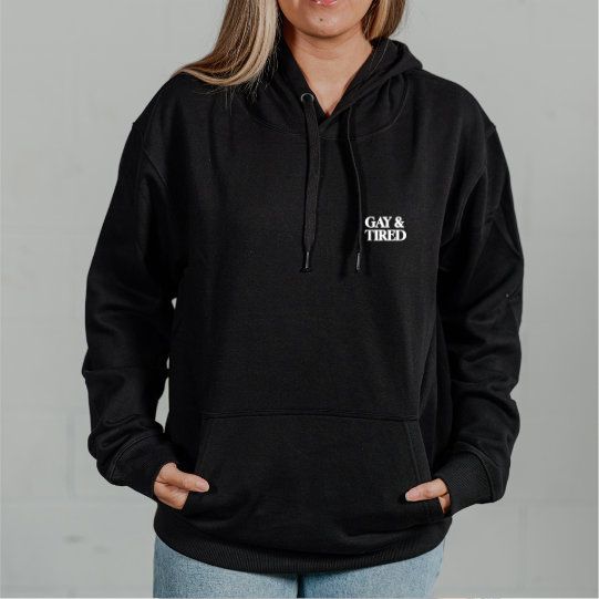 Meet your new favorite hoodie: The “Gay & Tired” Pride Pullover. Stop settling for average. We meticulously perfected this unisex, standard-weight hoodie—from the ideal weight to the unbeatable fit – by crafting it from a premium, durable combed polycotton blend. It’s built for lasting comfort and style. Express your vibe with confidence in a hoodie that feels as good as it looks.