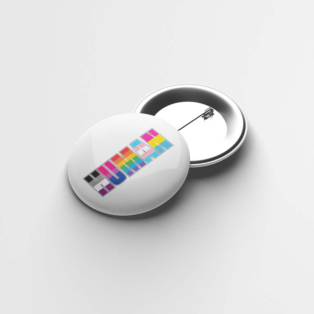 Handmade Pride badge with plastic inner and metal pin on the back.
