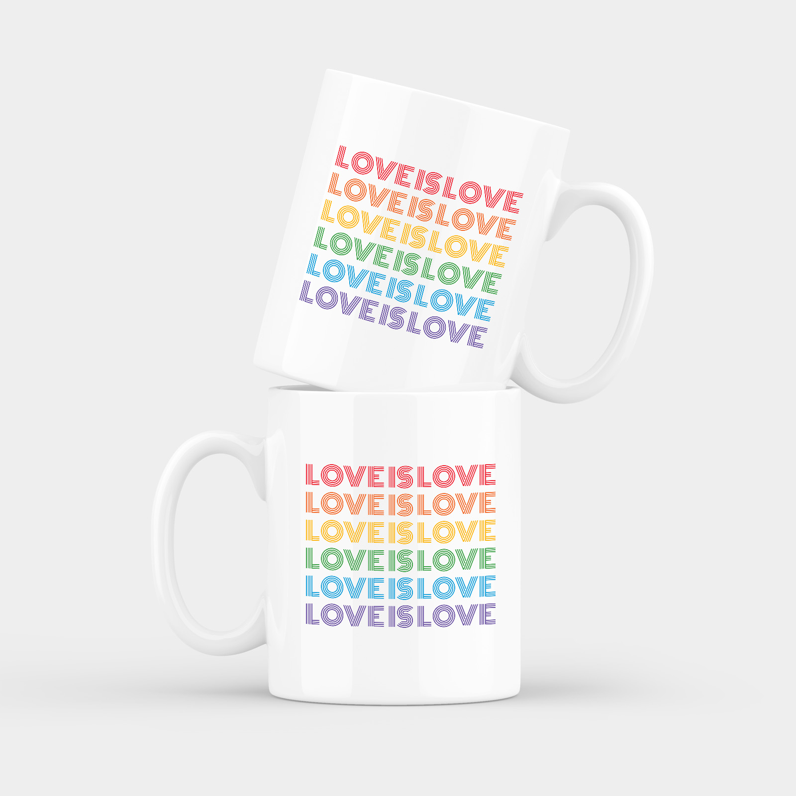 This 11oz white mug features a colourful pride design that celebrates love and equality. The mug is made of high-quality ceramic and is both microwave and dishwasher safe. It is individually packed in a white box for extra protection.