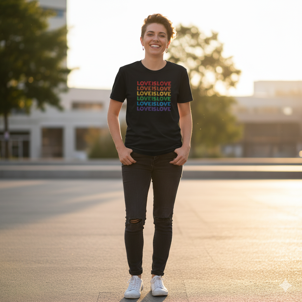 This comfortable and stylish pride t-shirt is made from 100% combed cotton and available in both black and white. The shirt has a fashion fit, a ribbed neck and double needled hem. It is pre-shrunk to minimise shrinkage. The shirt is perfect for showing your pride and supporting the LGBTQ+ community.