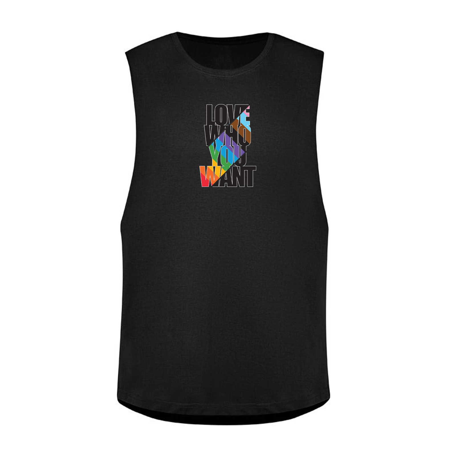 Show your pride in style with this comfortable and stylish 100% cotton tank top. The Love Who You Want design is printed on the front in vibrant colours, and the drop armholes and raw edge finish give it a casual, relaxed look. The longer tail and curved hem provide a comfortable fit, and the tear away back neck label makes it easy to remove. The taped shoulder and neck help maintain the shape of the tank top, so you can wear it with pride all summer long.