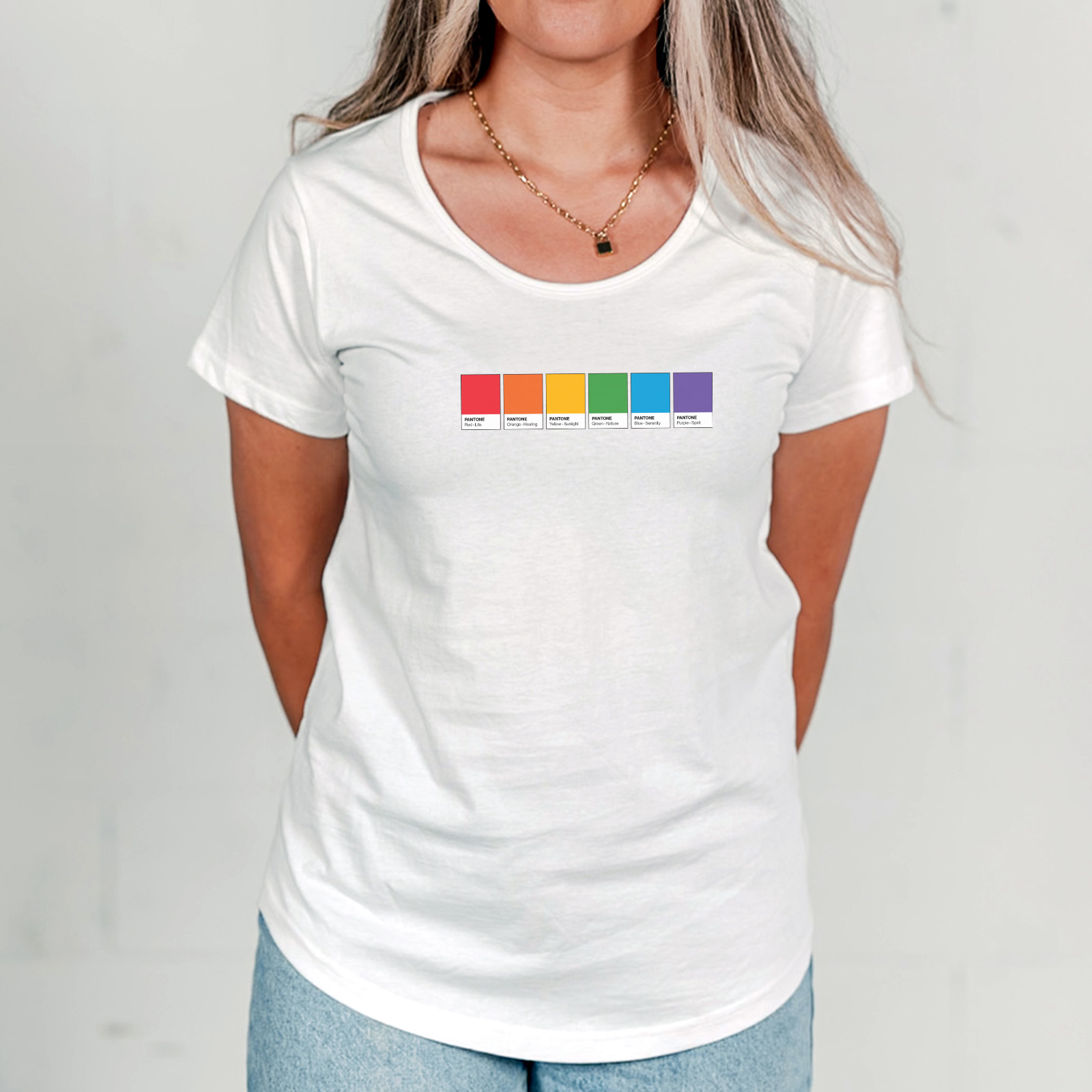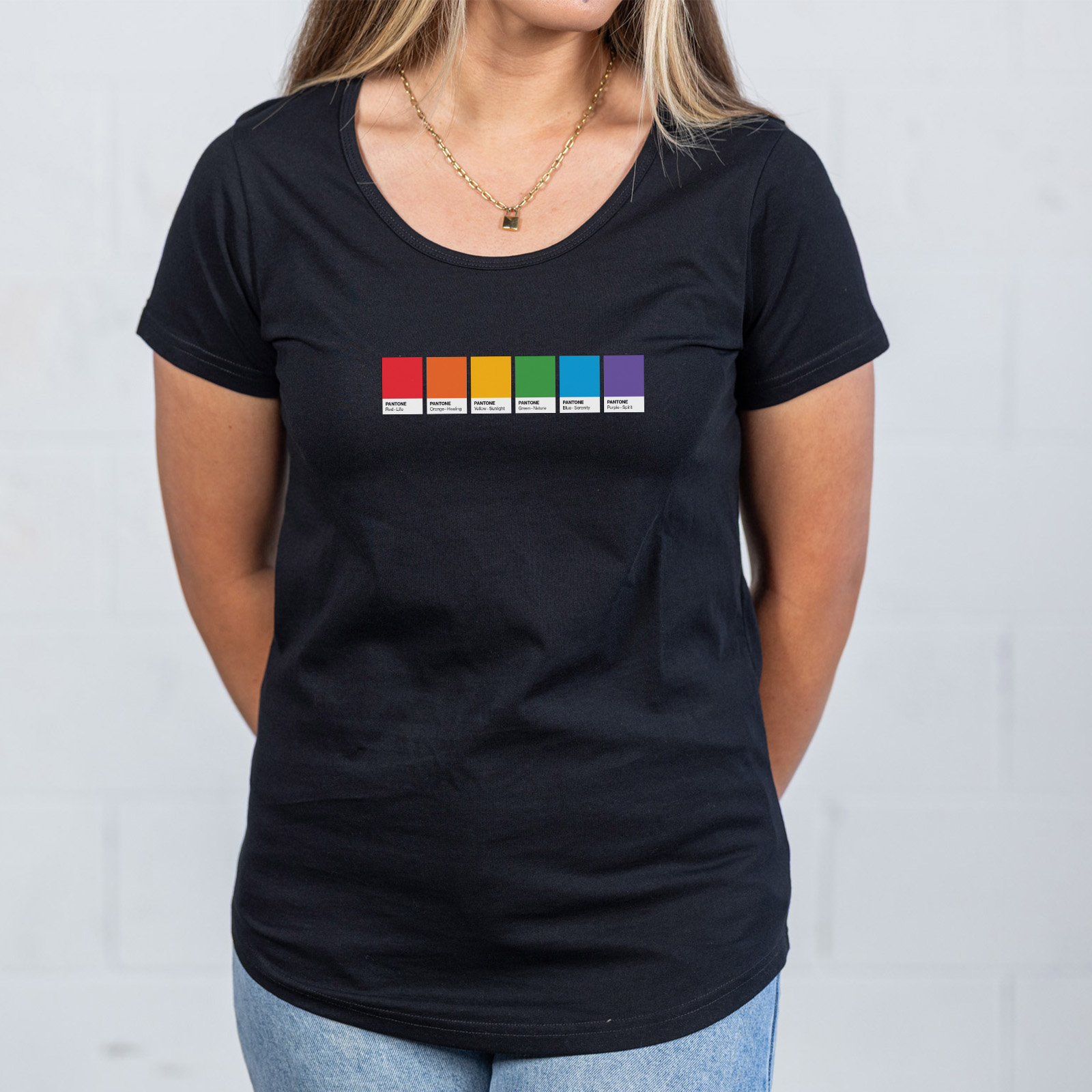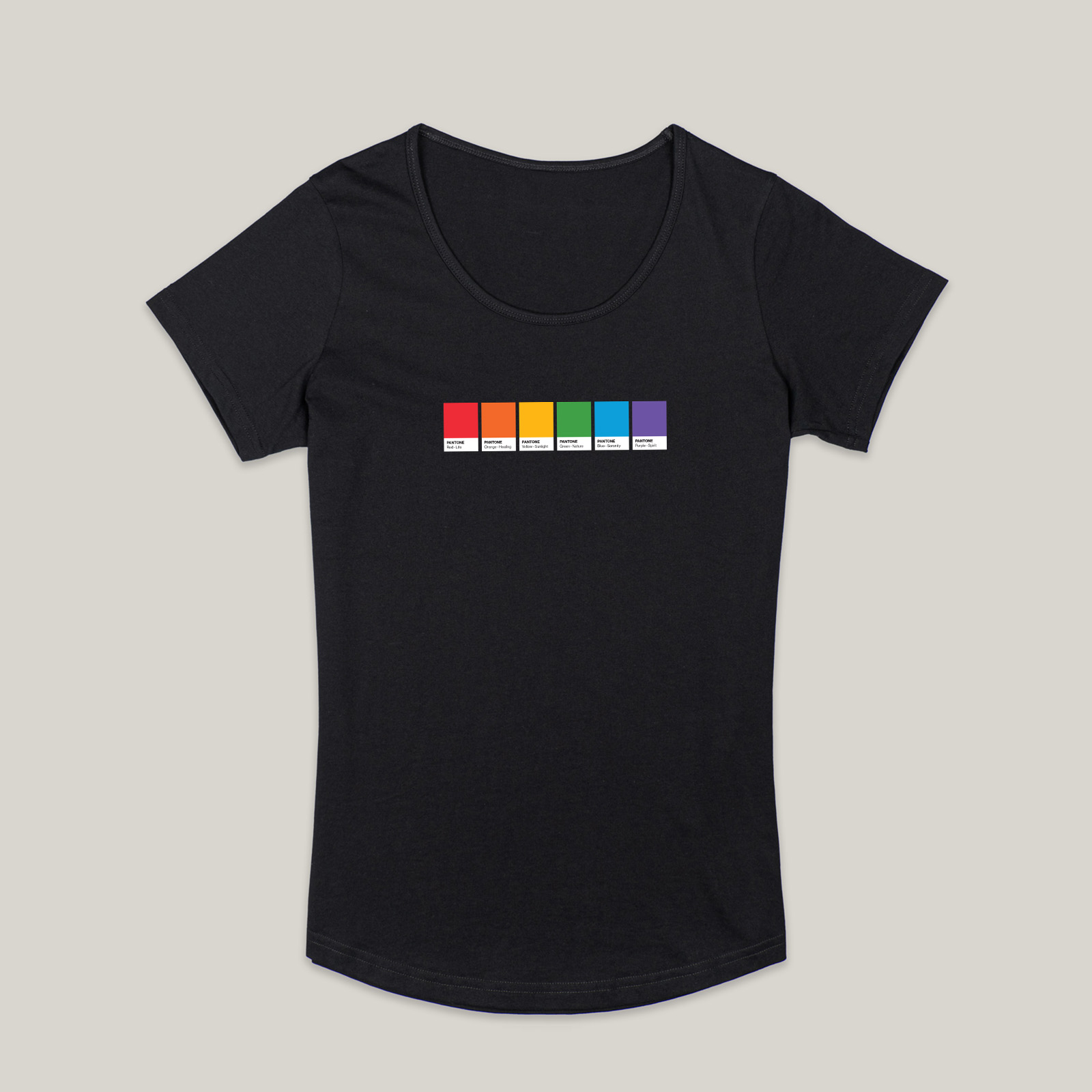 Show your pride with our subtle Pride Colours Swatch Jazz Tee! Inspired by the Pantone Colour Swatches!