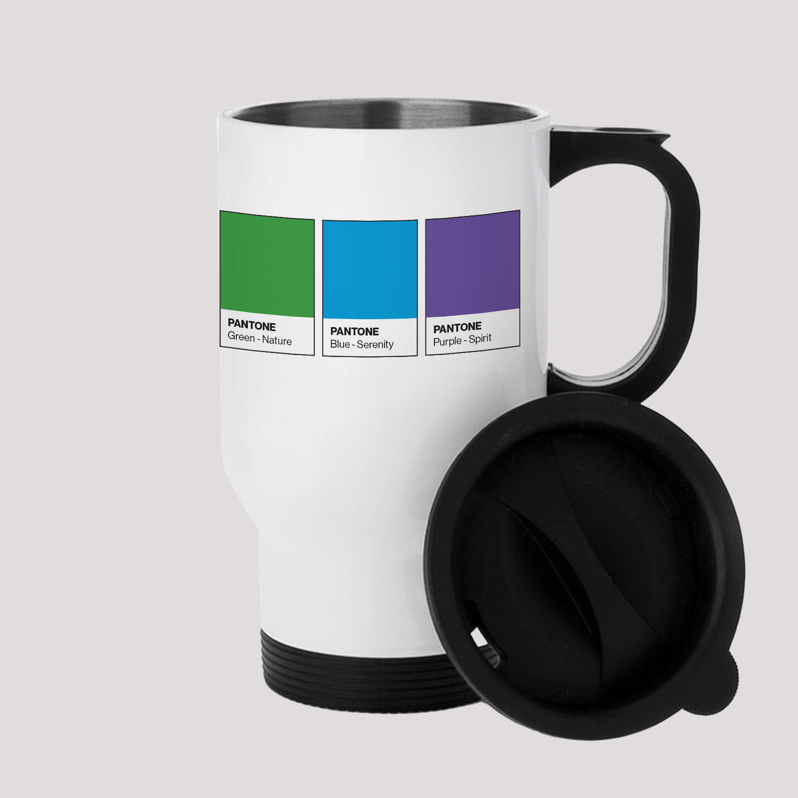 Show your pride with our subtle Pride Colours Swatch travel mug! Inspired by the Pantone Colour Swatches!