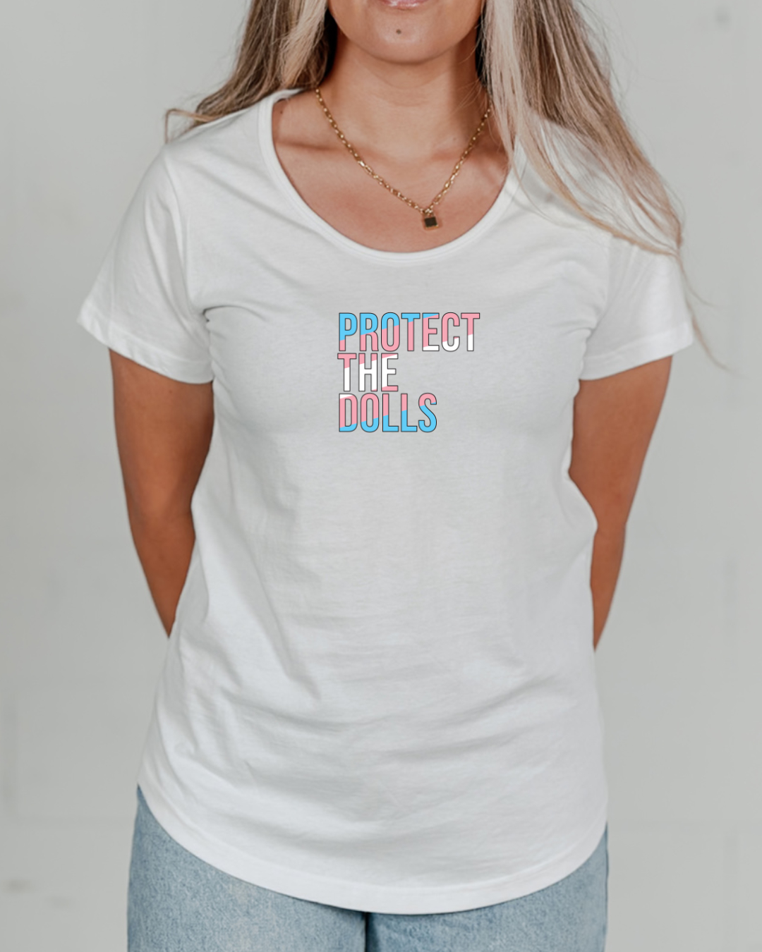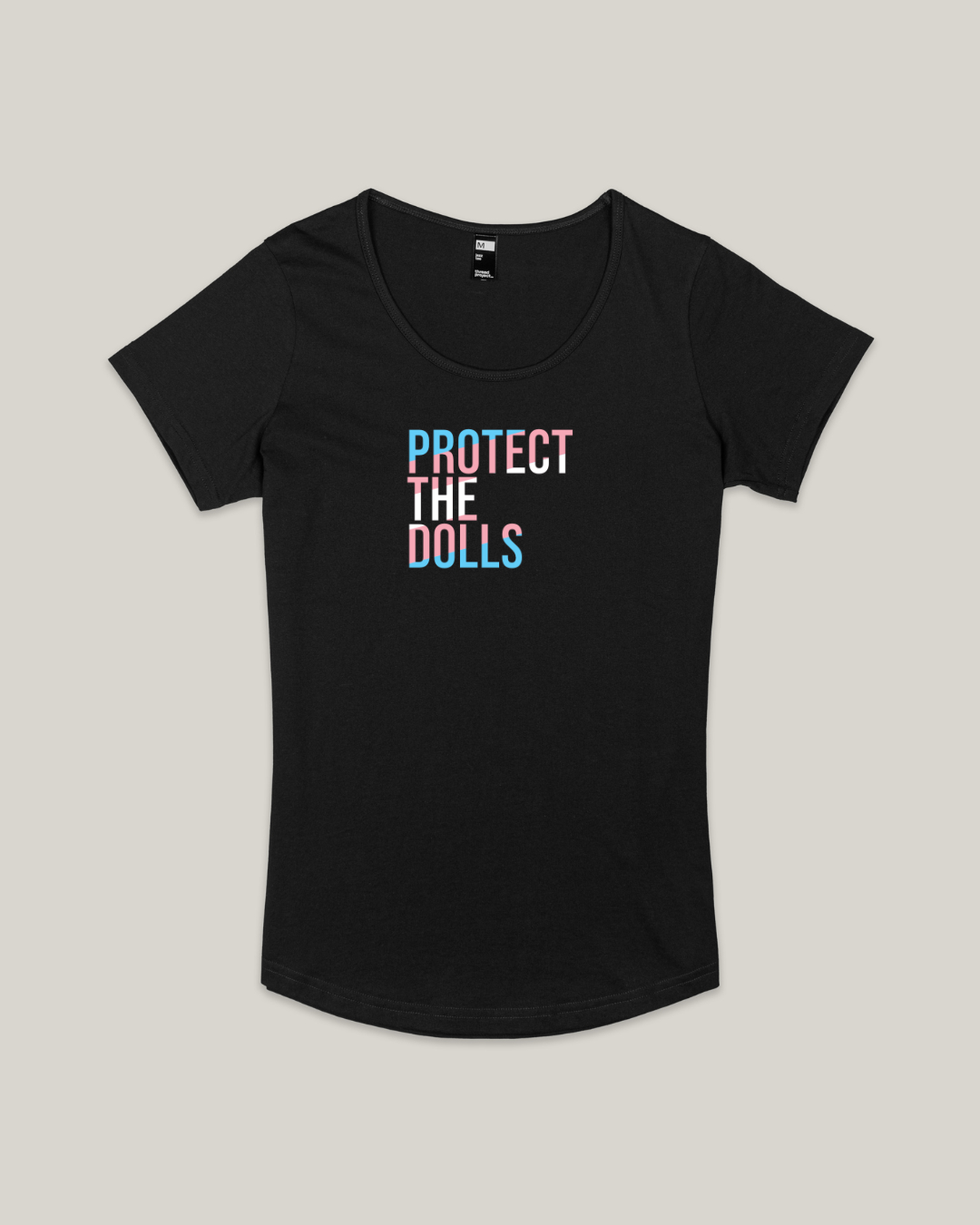 - Design: High-quality “Protect The Dolls” typography in Trans Pride colours.