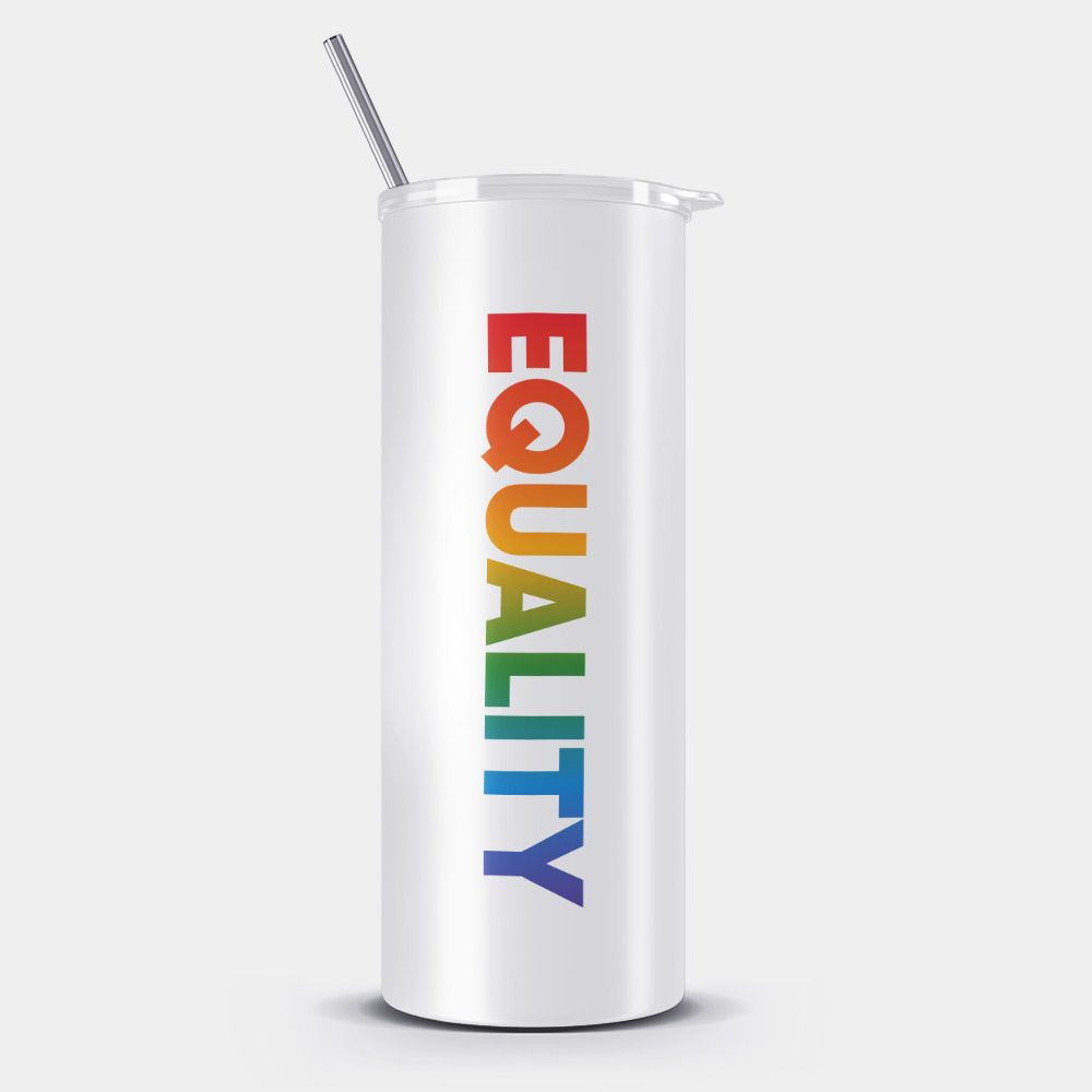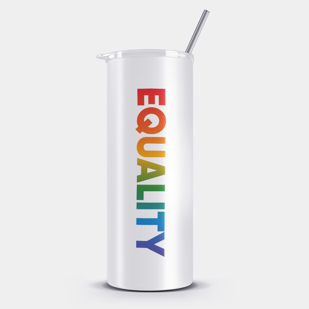 Our Rainbow Equality Stainless Steel Pride Tumbler, a 600ml (20 oz) travel companion with a metal straw that’s always ready for your adventures. It boasts double-walled insulation technology to keep your drinks at the perfect temperature for longer.